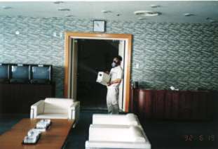 残留噴霧施工中