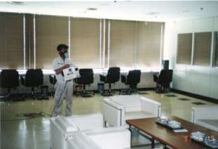 残留噴霧施工中